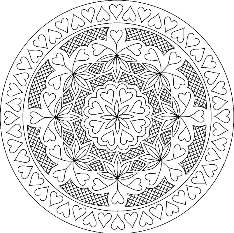 Coloring description : Download Printable Flower Mandala with Hearts Coloring Page