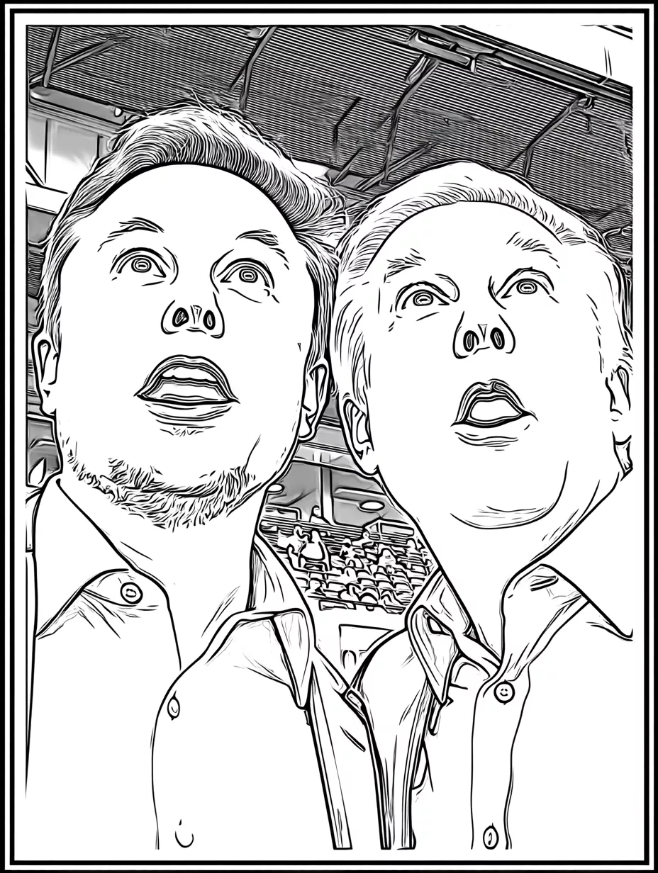 Coloring description : Download Printable Elon Musk & Trump Look Up Coloring Page Coloring Page