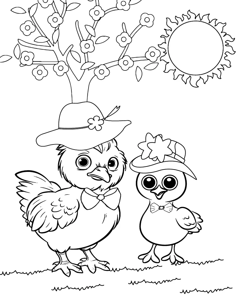 Coloring description : Download Printable Hen and Baby Chick Coloring Page