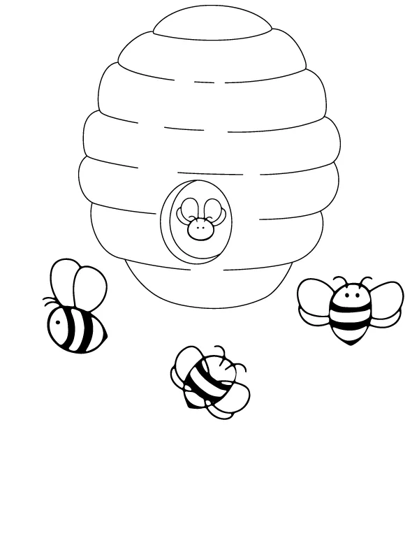Coloring description : Download Printable Beehive and Adorable Bees Coloring Page