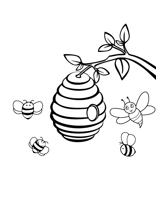 Coloring description : Download Printable Simple Beehive and Wonderful Bee Coloring Page