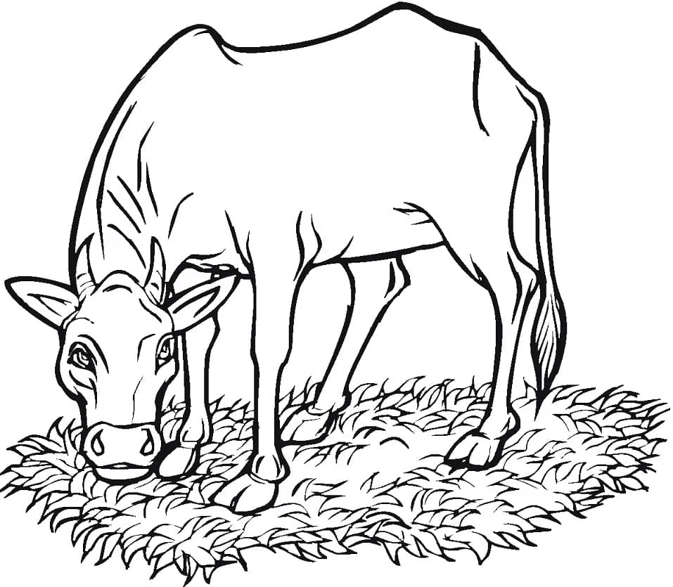 Coloring description : Download Printable Cow Eating Grass Coloring Page