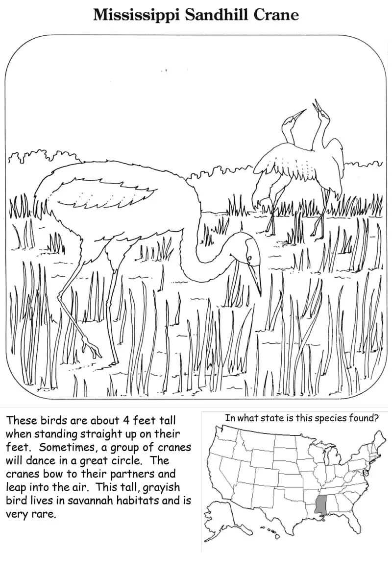 Coloring description : Download Printable Mississippi Sandhill Crane Coloring Page