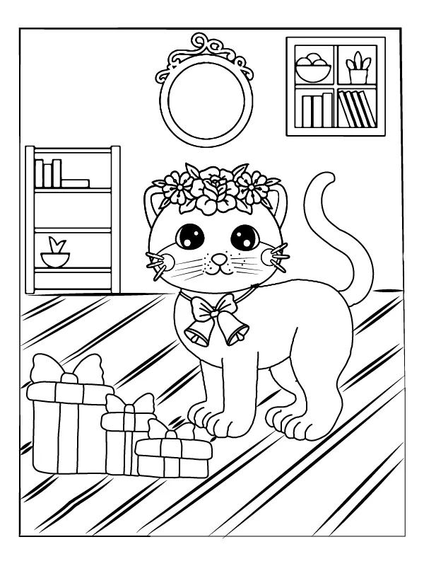 Coloring description : Download Printable Adorable Cat and Gifts Coloring Page