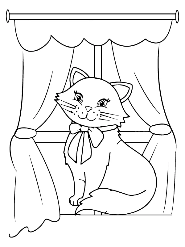 Coloring description : Download Printable Cute Cat by the Window Coloring Page