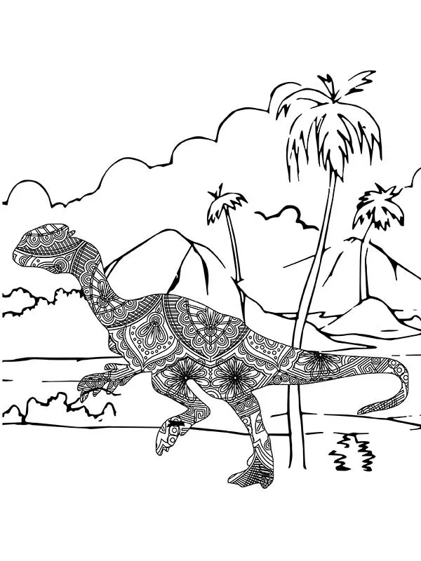 Coloring description : Download Printable Tyrannosaurus Rex Dinosaur in Nature Alebrijes Coloring Page