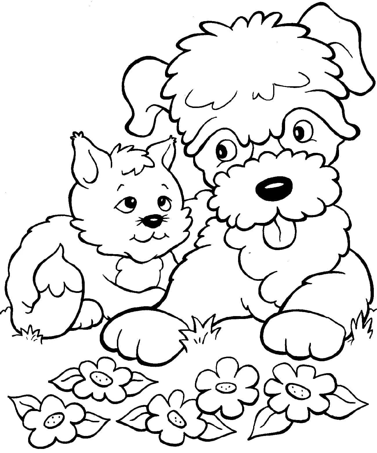 Coloring description : Download Printable Cute Cat and Dog Coloring Page