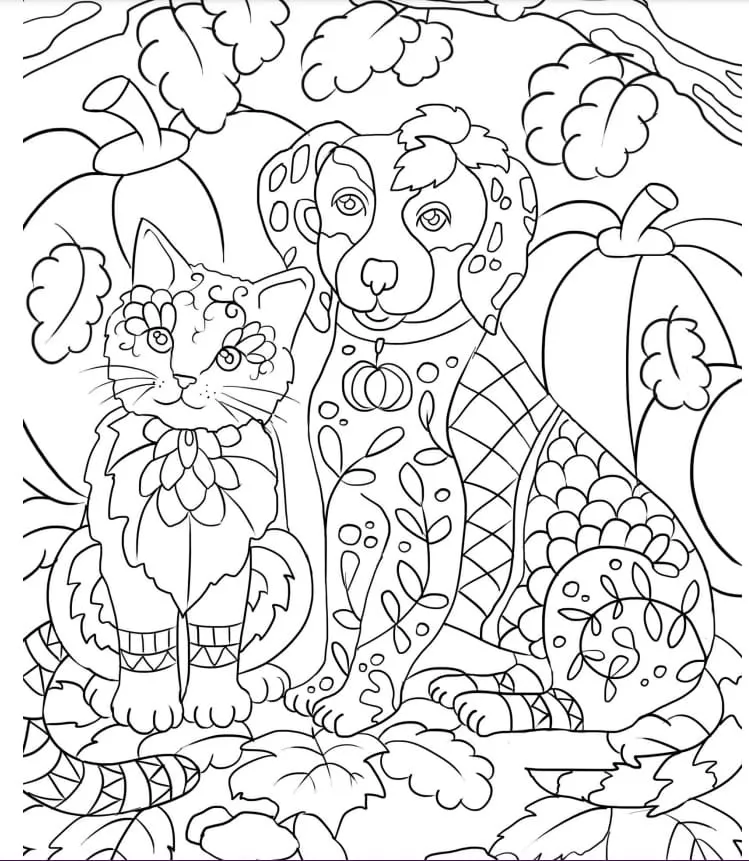 Coloring description : Download Printable Dog and Cat for Adults Coloring Page
