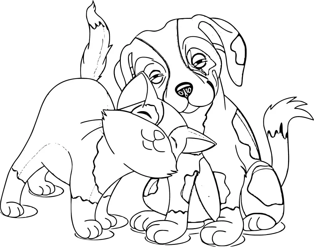 Coloring description : Download Printable Dog and Cat Friendship Coloring Page