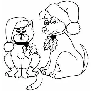Coloring description : Download Printable Dogs and Cat on Christmas Coloring Page