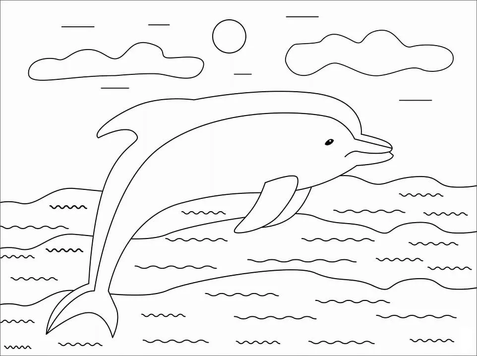 Coloring description : Download Printable Very Easy Dolphin Coloring Page