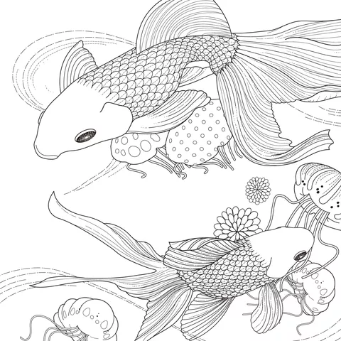 Coloring description : Download Printable 2 Beautiful Goldfish Coloring Page