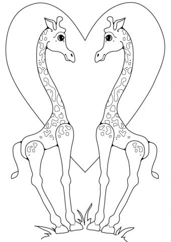 Coloring description : Download Printable The Love Of Giraffes Coloring Page