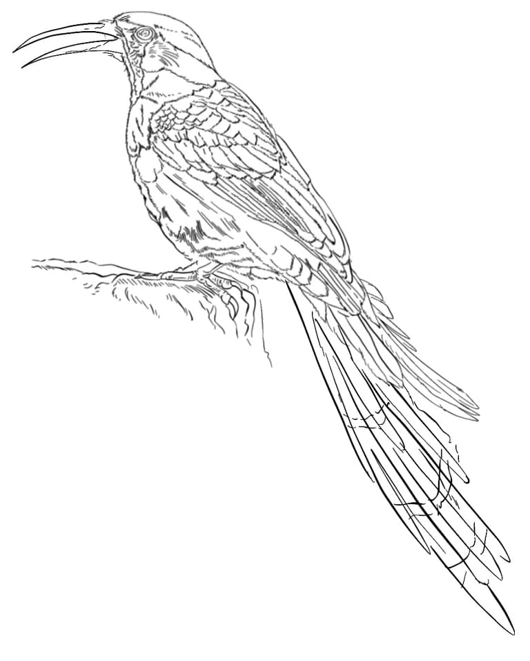 Coloring description : Download Printable Green Wood-Hoopoe Coloring Page