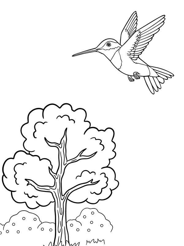 Coloring description : Download Printable Hummingbird and Big Tree Coloring Page