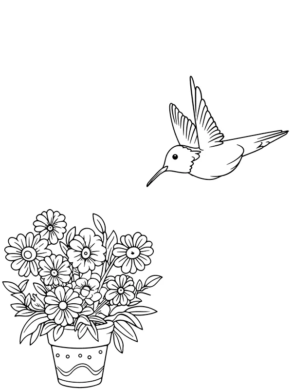 Coloring description : Download Printable Hummingbird and Flower Vase Coloring Page