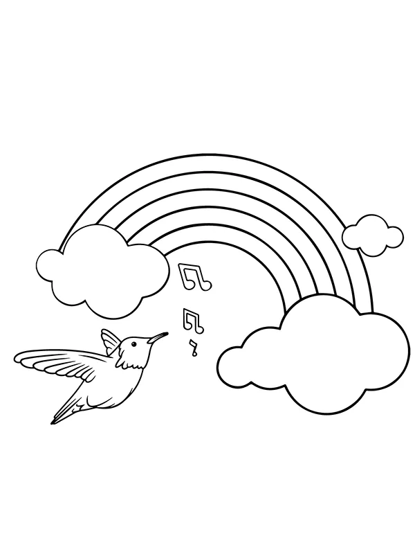 Coloring description : Download Printable Hummingbird Singing over the Rainbow Coloring Page