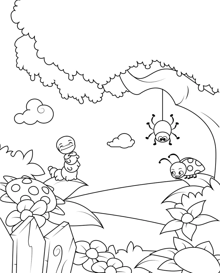 Coloring description : Download Printable Cartoon Insects Playing Coloring Page