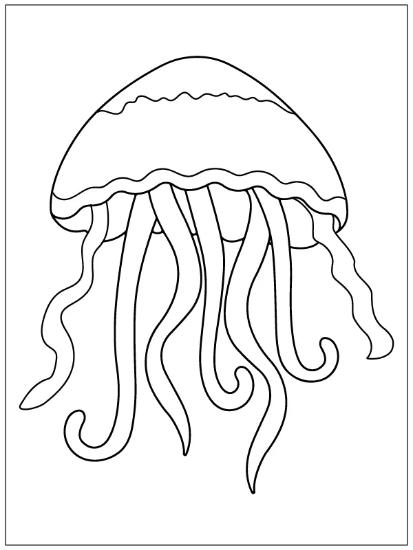 Coloring description : Download Printable Jellyfish with Long Tentacles Coloring Page