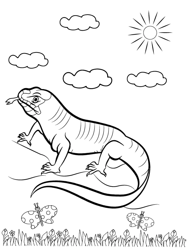 Coloring description : Download Printable Komodo Dragon and Butterflies Coloring Page