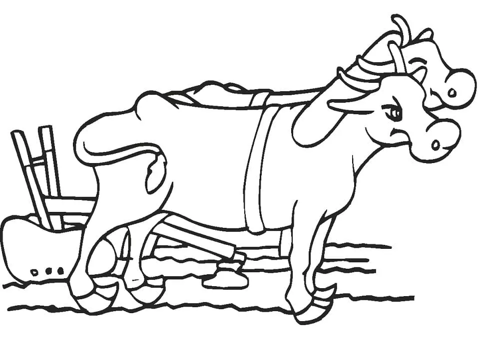 Coloring description : Download Printable Oxen with Plow Coloring Page