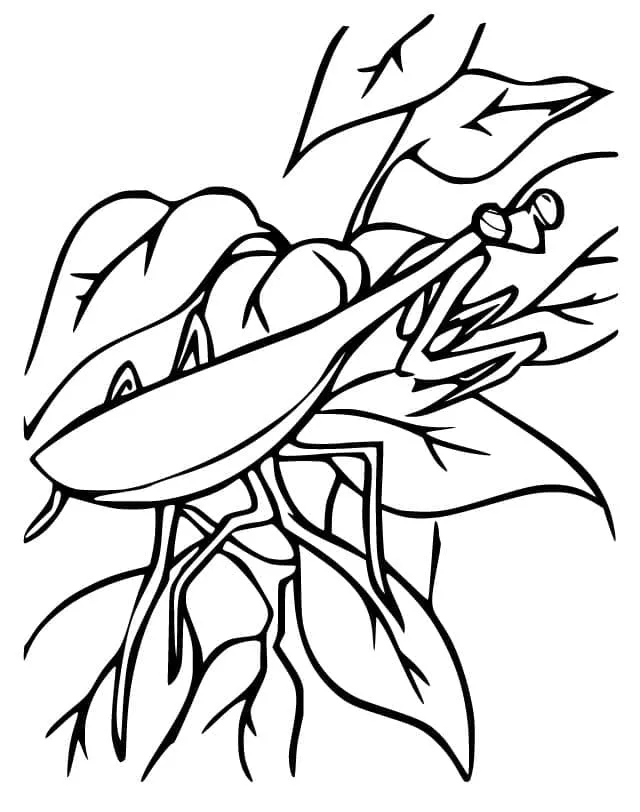 Coloring description : Download Printable Praying Mantis on Leaves Coloring Page