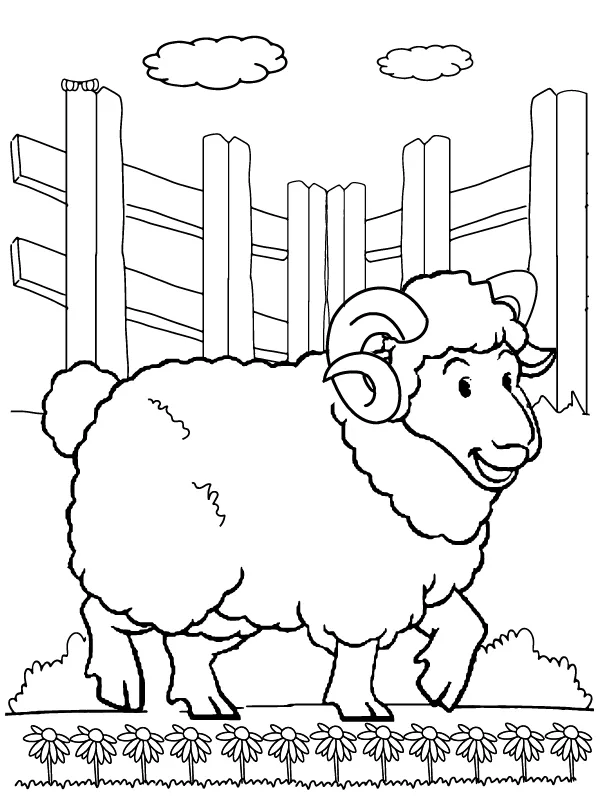 Coloring description : Download Printable Bighorn Sheep with Cute Face Coloring Page
