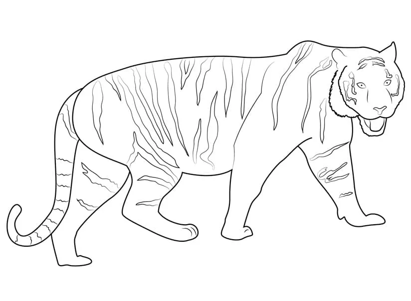 Coloring description : Download Printable Wild Tiger Walking Coloring Page
