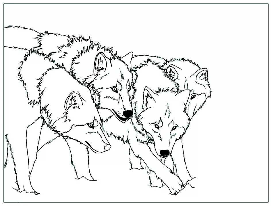 Coloring description : Download Printable Four Wolves Coloring Page