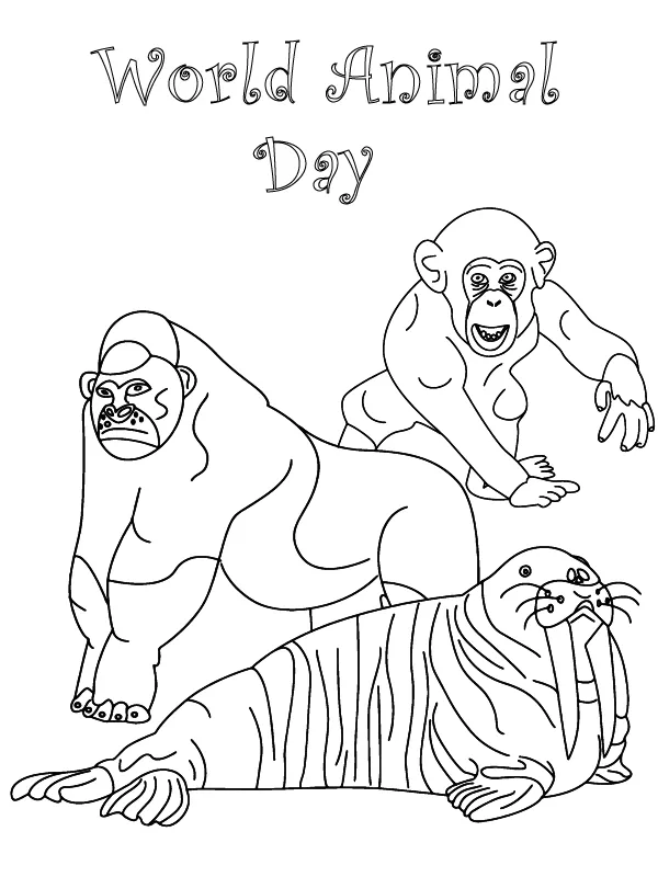 Coloring description : Download Printable Gorilla, Monkey, and Walrus Coloring Page
