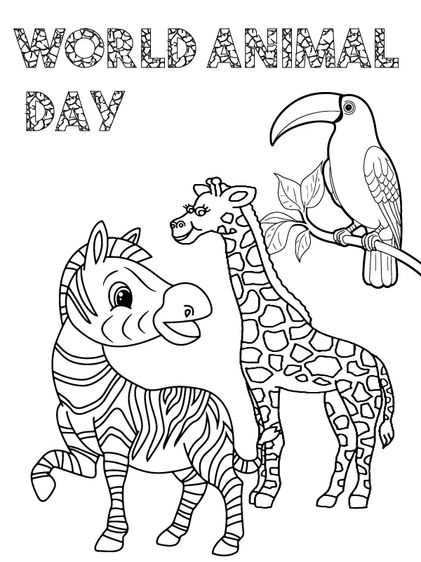 Zebra, Giraffe, and Toucan