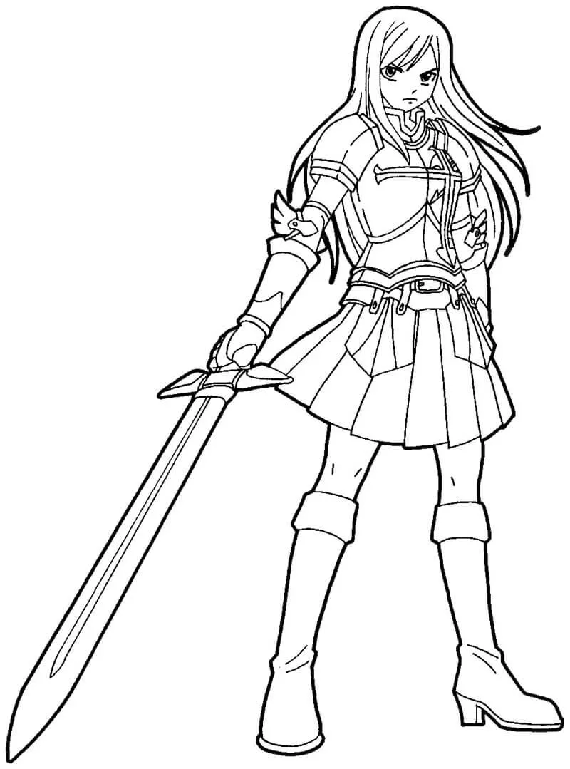 Coloring description : Download Printable Erza Scarlet with Sword Coloring Page