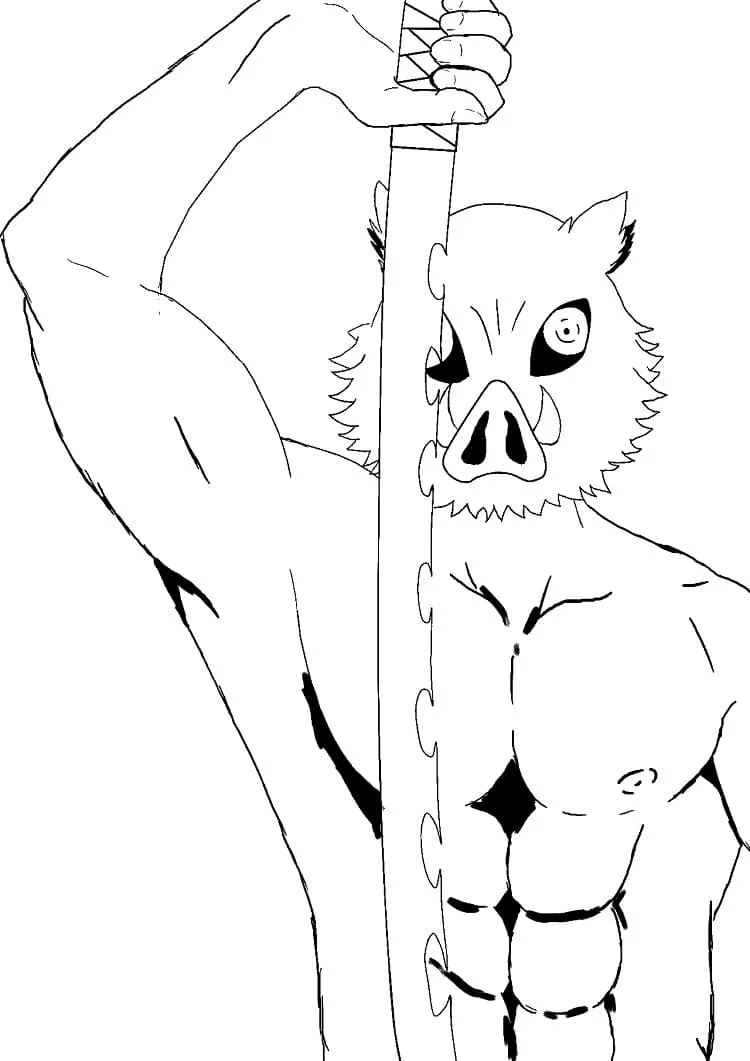 Coloring description : Download Printable Inosuke Holding Sword Coloring Page