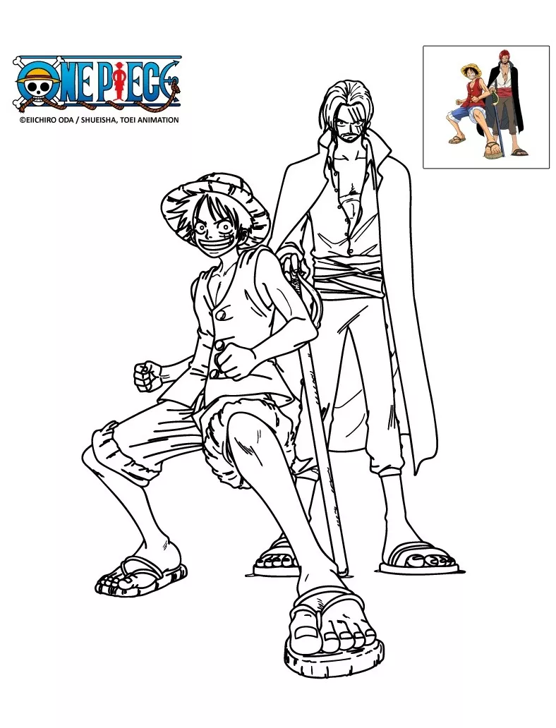 Coloring description : Download Printable Serious Shanks and Luffy Coloring Page