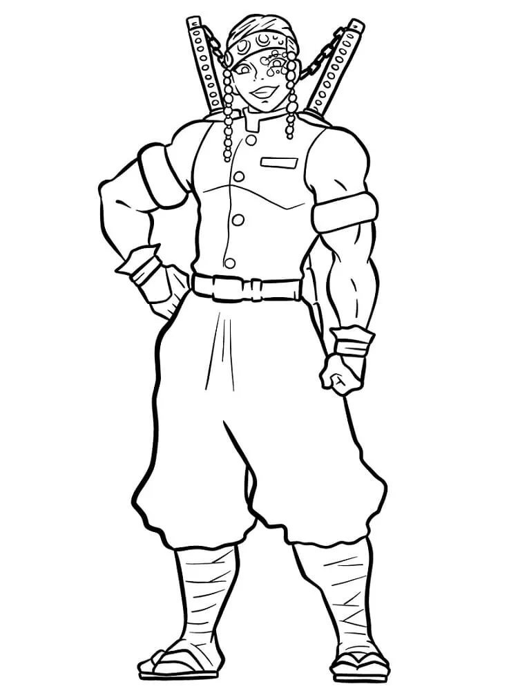 Coloring description : Download Printable Tengen Uzui is Smiling Coloring Page