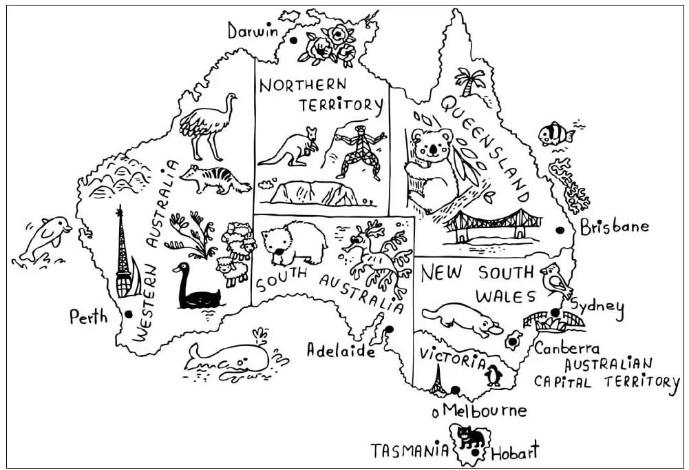 Coloring description : Download Printable Australia Map Coloring Page