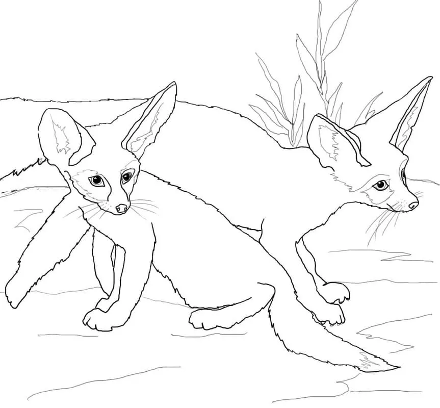 Coloring description : Download Printable Babies Fennec Foxes Coloring Page