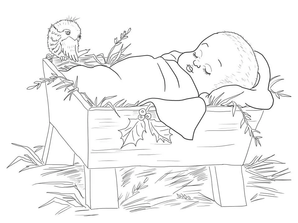 Coloring description : Download Printable Baby Jesus in a Manger Coloring Page