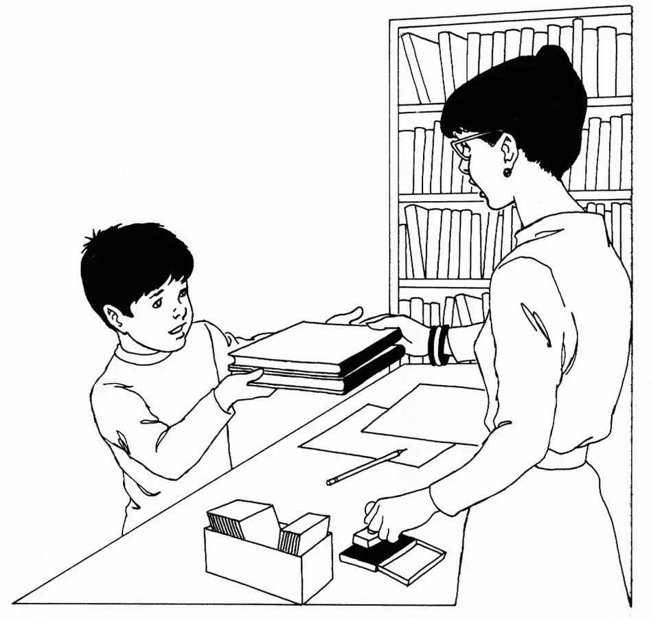 Coloring description : Download Printable Boy and Librarian Coloring Page