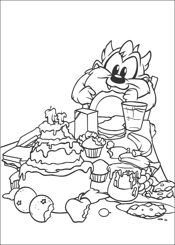 Coloring description : Download Printable Baby Taz Eating Coloring Page