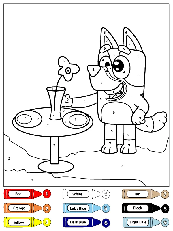 Coloring description : Download Printable Bluey Watching the Flower Vase Color by Number Coloring Page