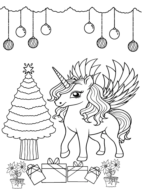 Coloring description : Download Printable Simple Printable Christmas Unicorn Coloring Page