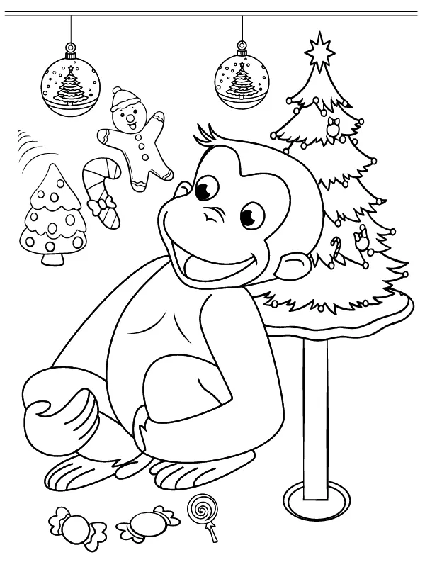 Coloring description : Download Printable Curious George Christmas Coloring Page