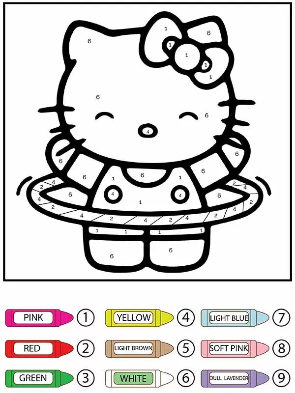 Coloring description : Download Printable Hello Kitty Hula Hoop Color By Number Coloring Page