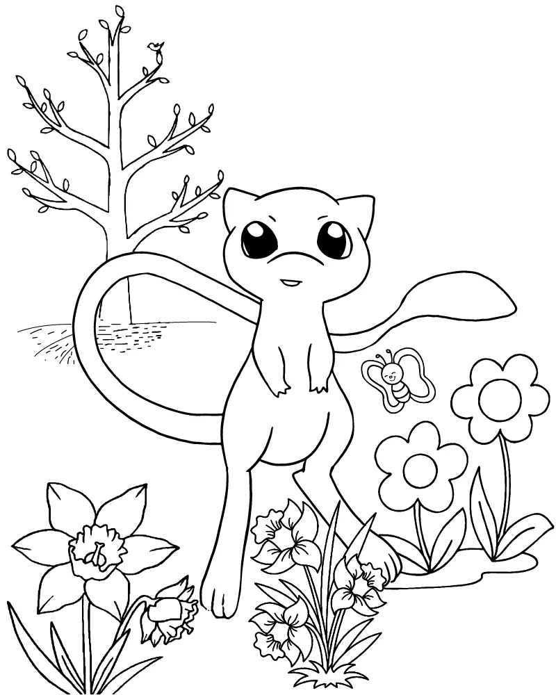 Coloring description : Download Printable Cute Pokemon Shiny Mew Coloring Page