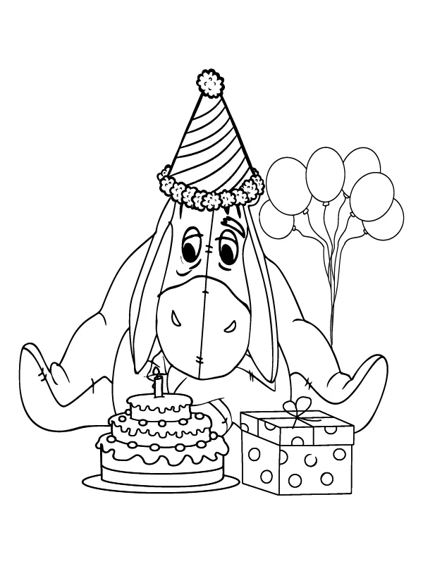 Coloring description : Download Printable Birthday Eeyore Coloring Page