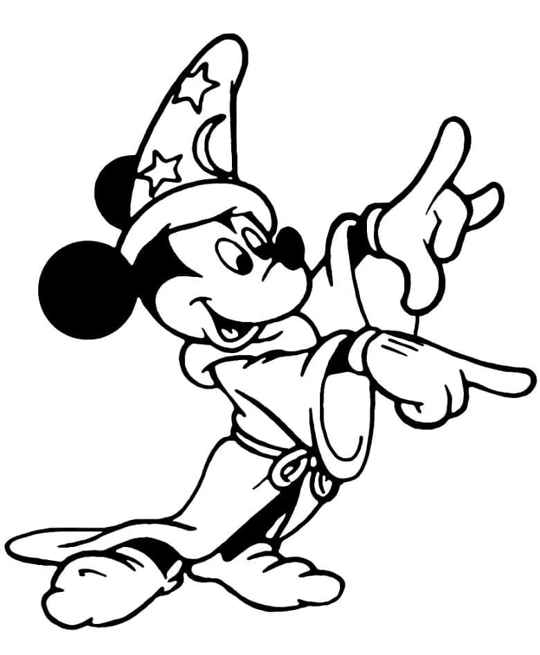 Coloring description : Download Printable Mickey Mouse Magician Fantasia Coloring Page