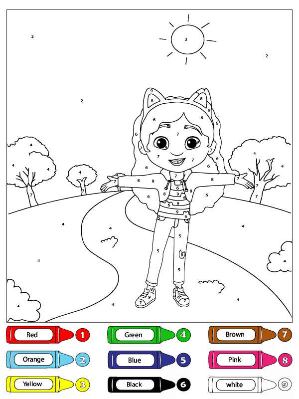 Coloring description : Download Printable Gabby Travel Outside Color by Number Coloring Page
