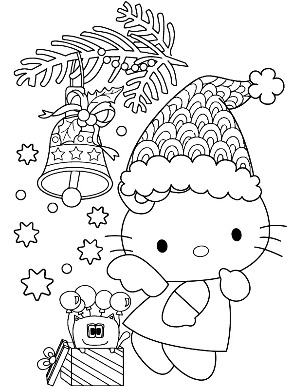 Coloring description : Download Printable Angel Hello Kitty Christmas Coloring Page