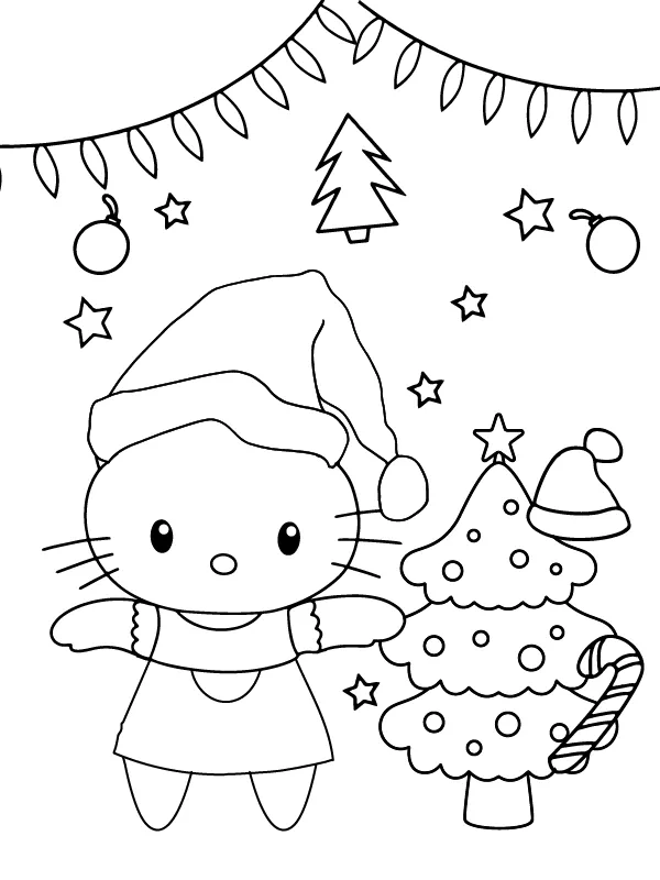 Coloring description : Download Printable Easy Hello Kitty Christmas Coloring Page